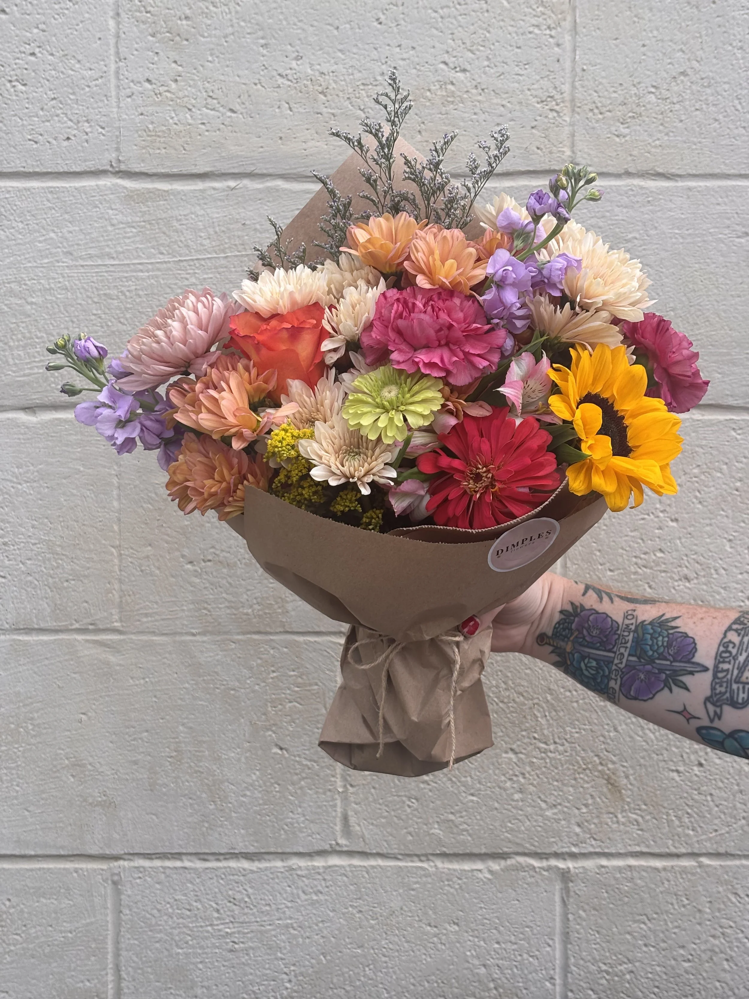 These options are for LOCAL PICKUP ONLY at our Studio.Looking for DELIVERY? Click HERE! Shop Categories: All Arrangements Wrapped Bouquets All | Arrangements | Wrapped Bouquets | Vase Upgrade $10.00 Add To Cart Added! Petite Wrap $38.00 Pastels White + Neutral Bright + Bold Add To Cart Added! Medium Wrap $55.00 White + Neutral Bright + Bold Pastels Add To Cart Added! Large Wrap $85.00 White + Neutral Bright + Bold Pastels Add To Cart Added! XL Wrap $100.00 White + Neutral Pastels Bright + Bold Add To Cart Added! Deluxe Wrap $150.00 White + Neutral Bright + Bold Pastels Add To Cart Added! Gift Card from $25.00 Select Value $25.00 $50.00 $75.00 $100.00 Purchase Added!